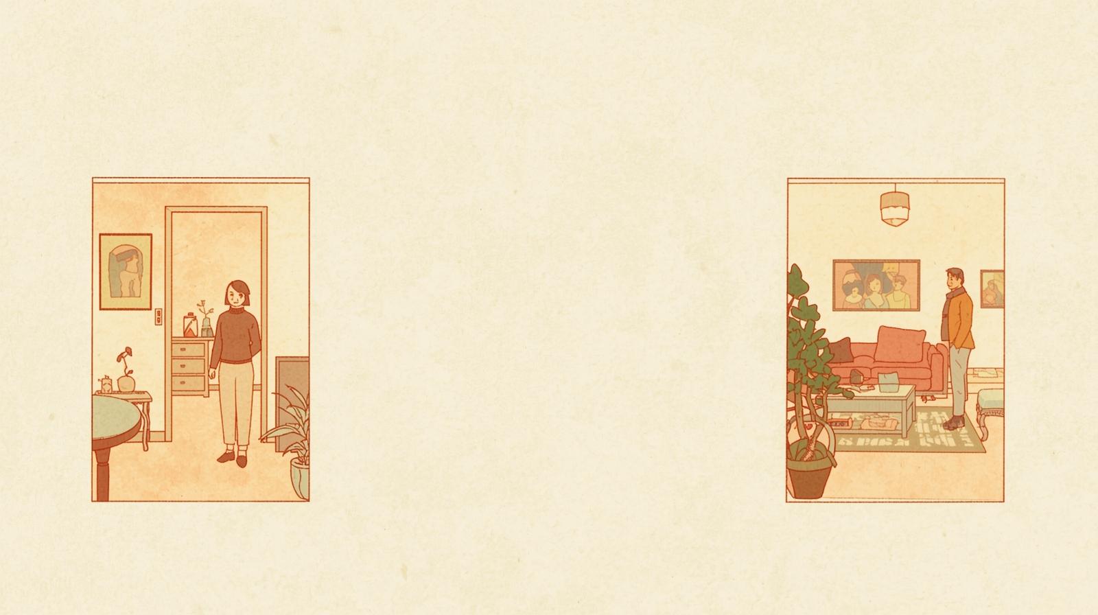 침실·부엌·거실 장면이 잦습니다. 가구 재배치·공동 정리·식탁 합의는 공명의 결말.